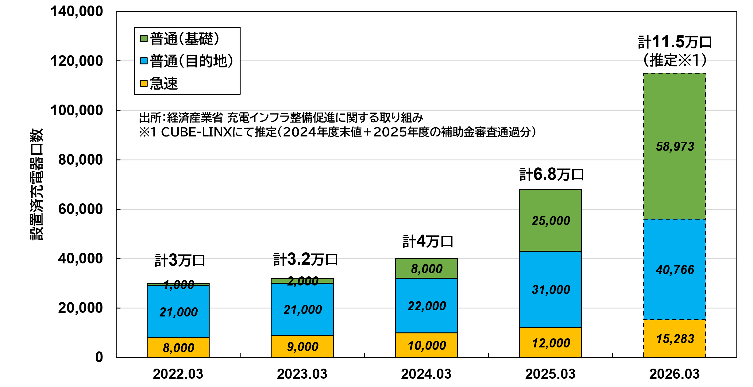 - 2025年度末(推定): 約11.5万口(※2024年度末値+2025年度の補助金審査通過分を合算して推計)